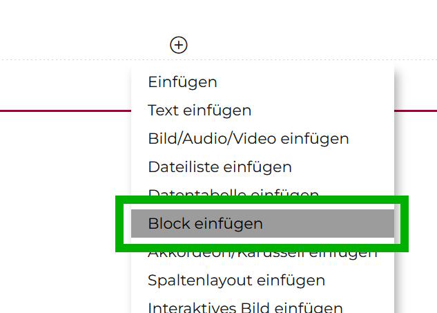 Mit dem Button Einfügen wird der Block an der vorher ausgewählten Stelle eingefügt.