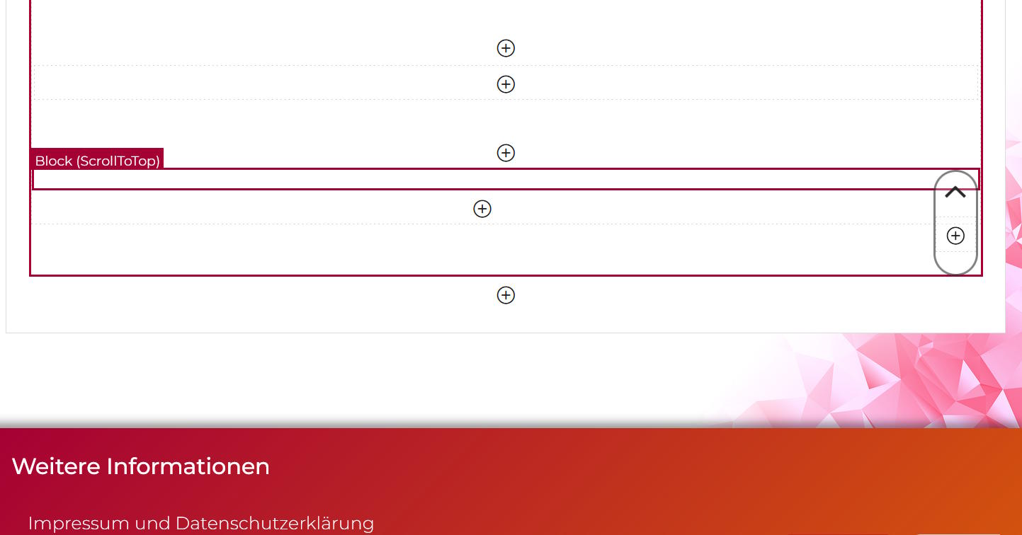 Der Scroll-To-Top - Button wird mit Hilfe des Blocks "ScrollToTop" im Seiteneditor eingebunden.