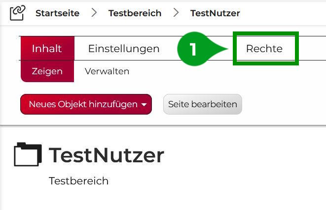 Wählen Sie den Reiter Rechte im Seitenmenü aus.