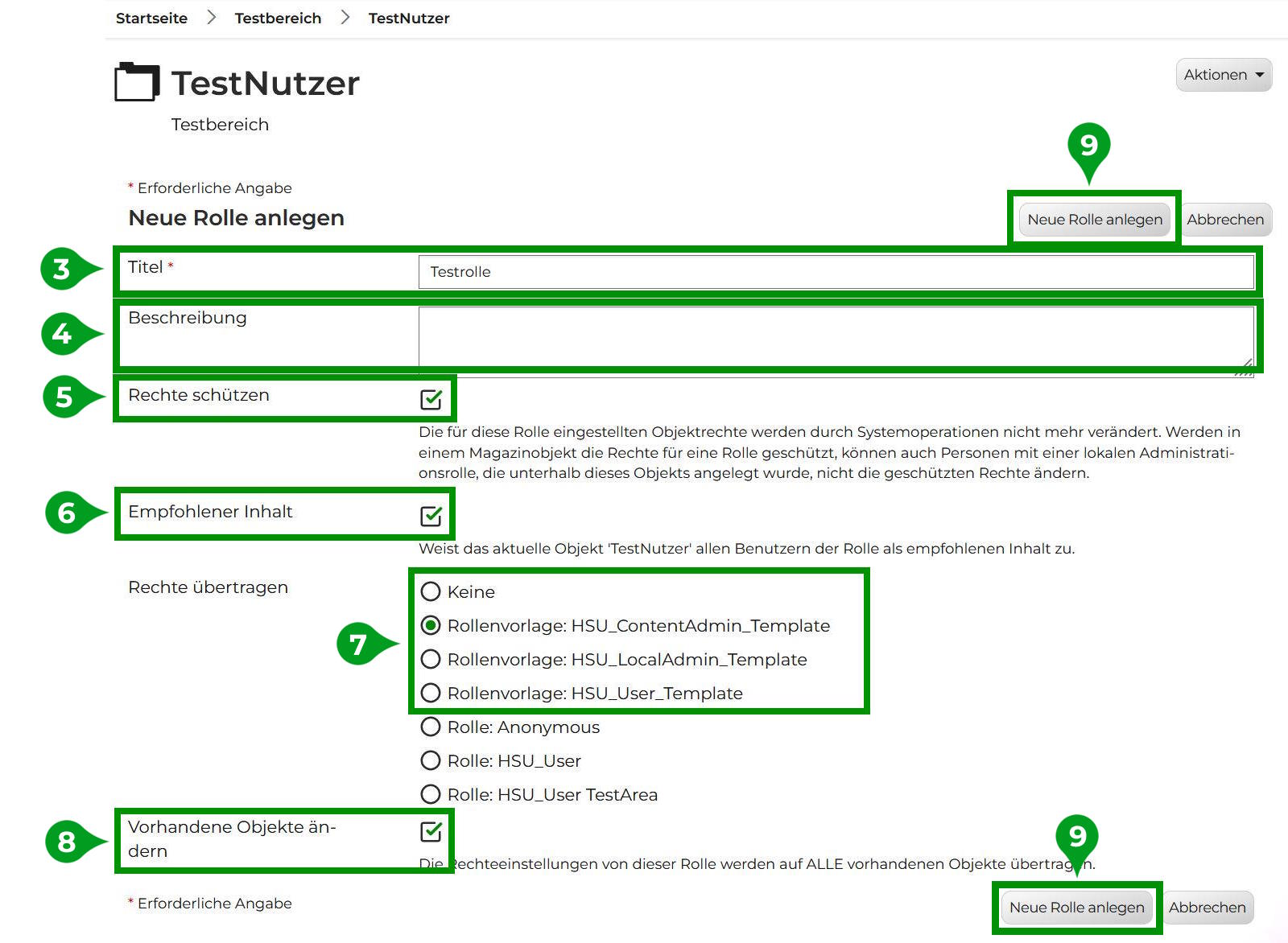 Klicken Sie auf neue Rolle anlegen um den Prozess zu beenden.