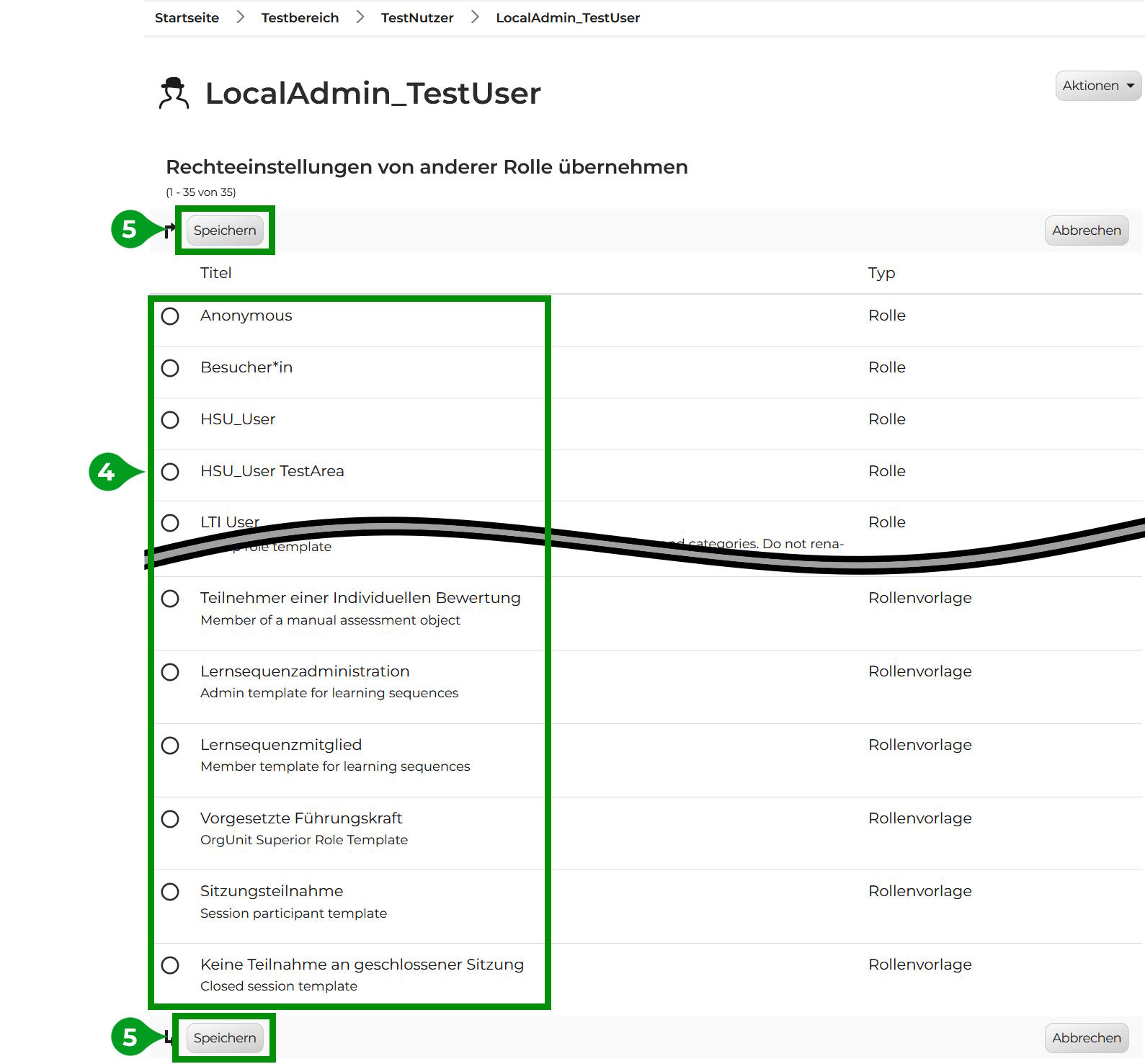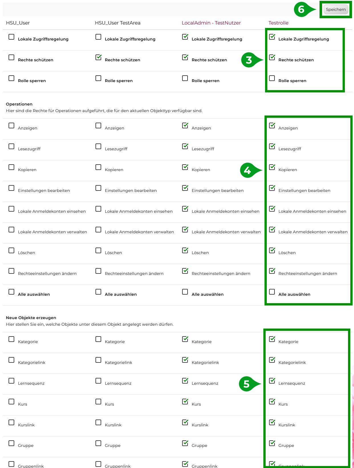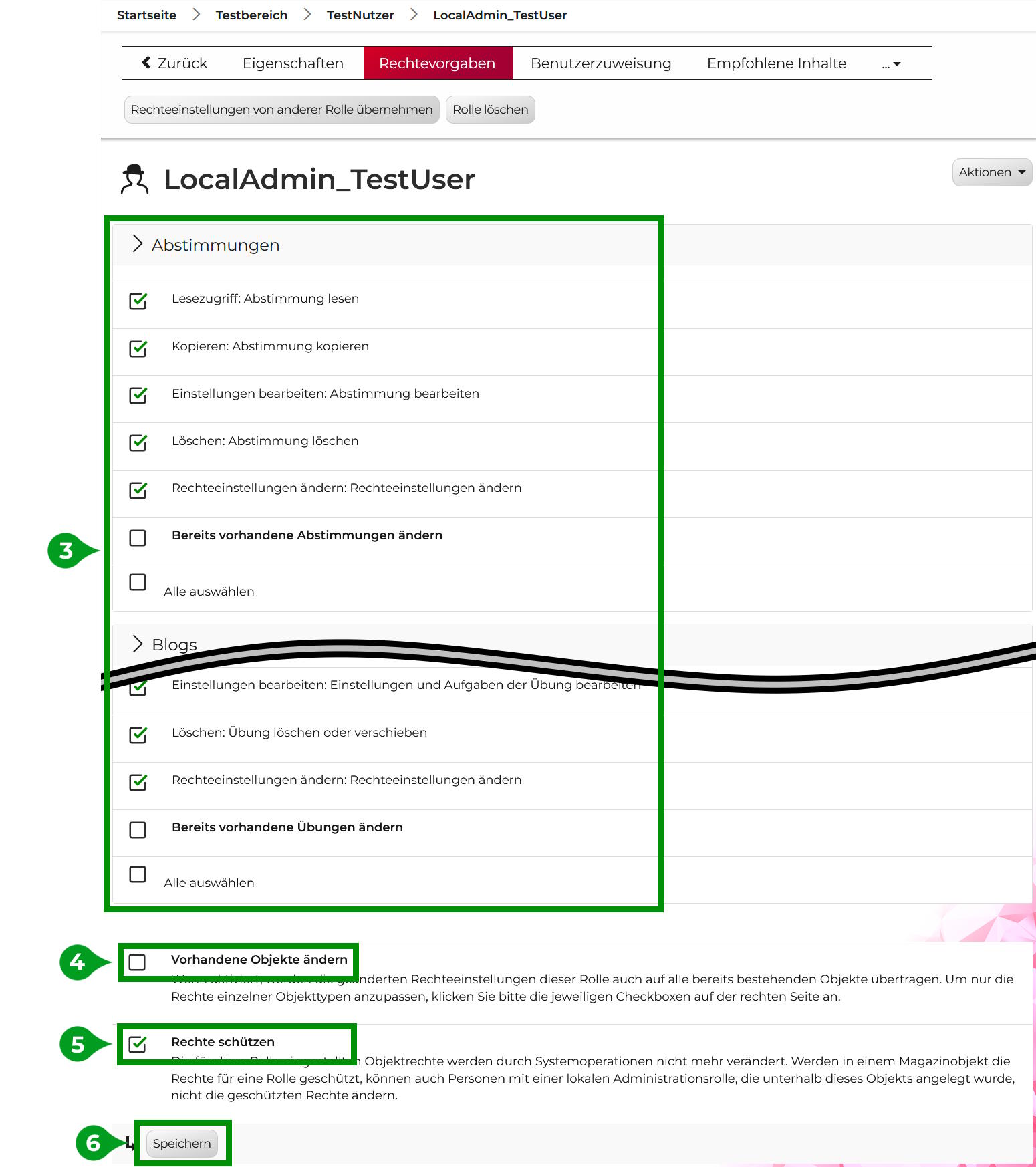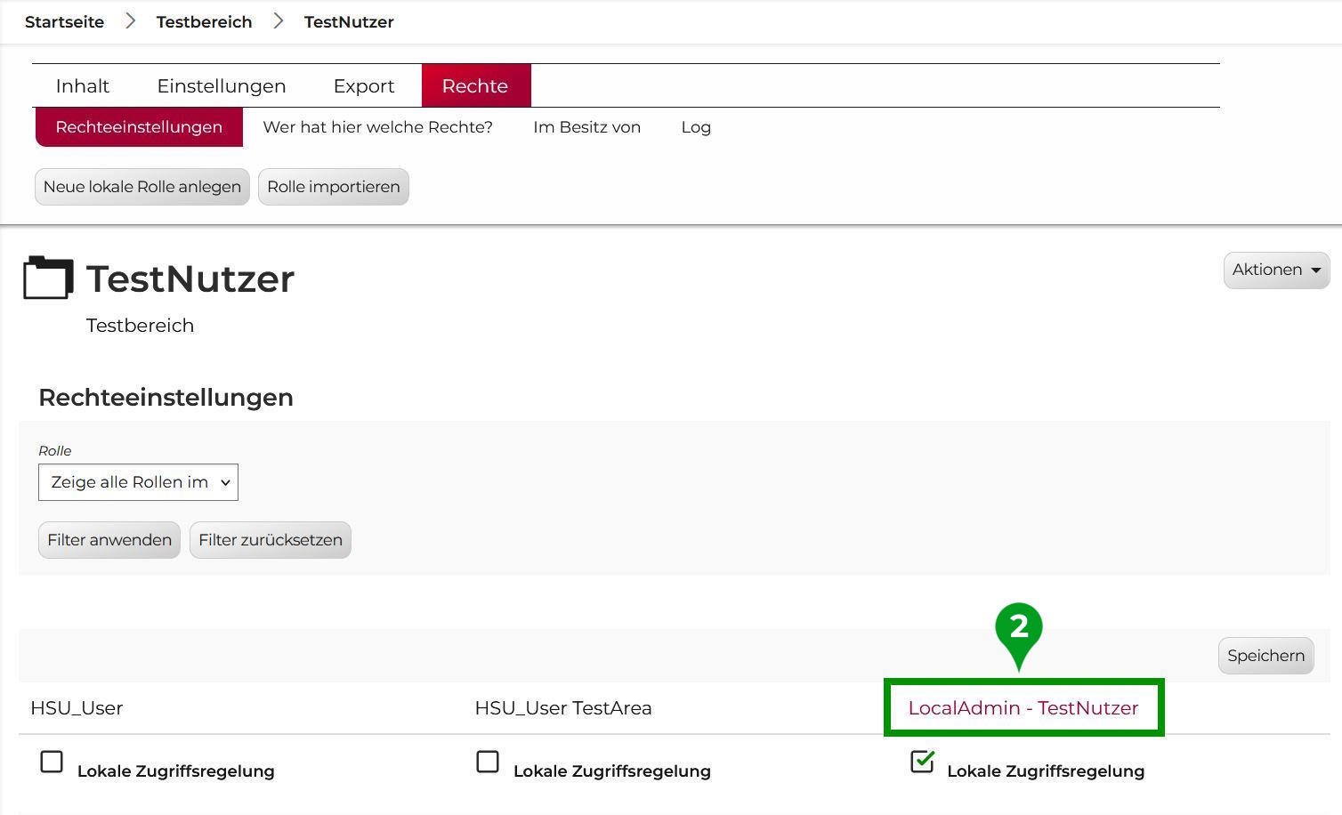 Mit dem Speichern-Button werden die Rechte für die lokale Rolle übernommen.