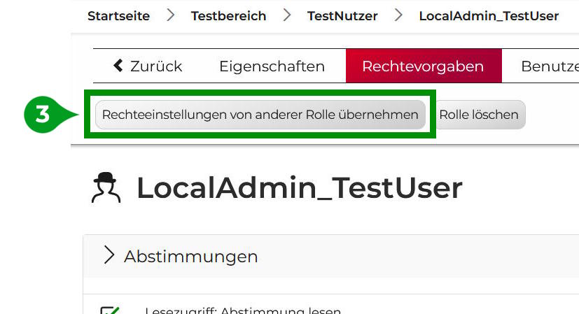 Klicken Sie auf Rechteeinstellungen von einer anderen Rolle übernehmen.