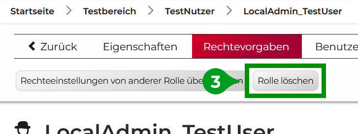 Wenn eine lokale Rolle nicht mehr benötigt wird, kann sie aus dem entsprechenden Bereich gelöscht werden. Das Löschen einer Rolle dient der Übersichtlichkeit und verhindert, dass veraltete oder doppelte Rollen die Rechteverwaltung unnötig verkomplizieren. Beim Entfernen einer lokalen Rolle werden alle damit verbundenen Rechte sowie die Zuordnungen zu Nutzer*innen in diesem Bereich aufgehoben. Bevor eine Rolle gelöscht wird, sollte daher geprüft werden, ob sie tatsächlich nicht mehr verwendet wird, um unbeabsichtigte Einschränkungen für bestehende Mitglieder zu vermeiden.