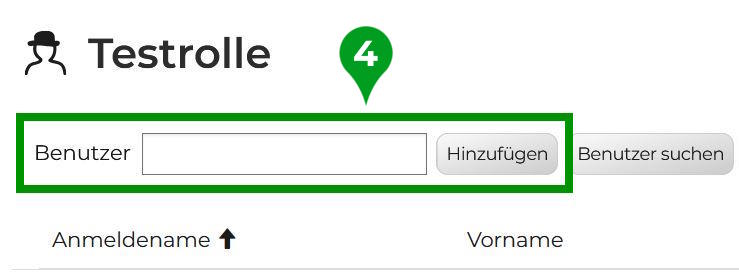 Tragen Sie im Textfeld den Nutzernamen oder die Nutzerkennung ein, um einen Nutzer/eine Nutzerin zur lokalen Rolle einzufügen.