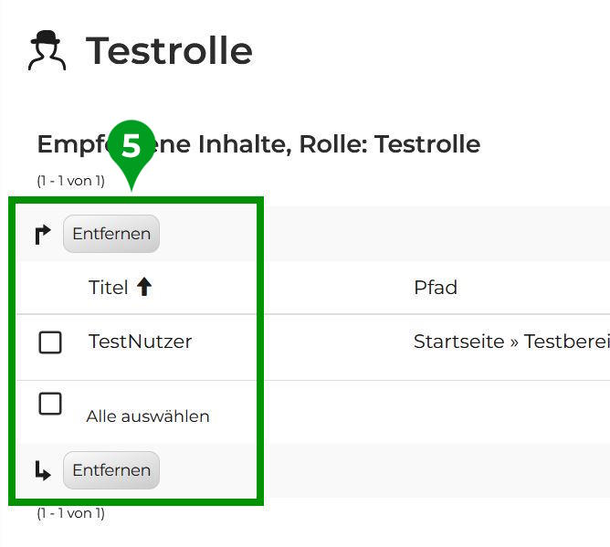 Um einen Nutzer zu entfernen, klicken Sie zunächst die Checkboxen vor dem Nutzer an, der/die entfernt werden sollen. Klicken Sie anschließend auf den Entfernen-Button.